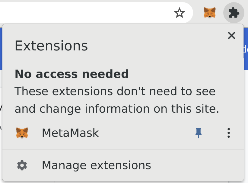- Click the pin icon next to MetaMask to ensure it is always visible.