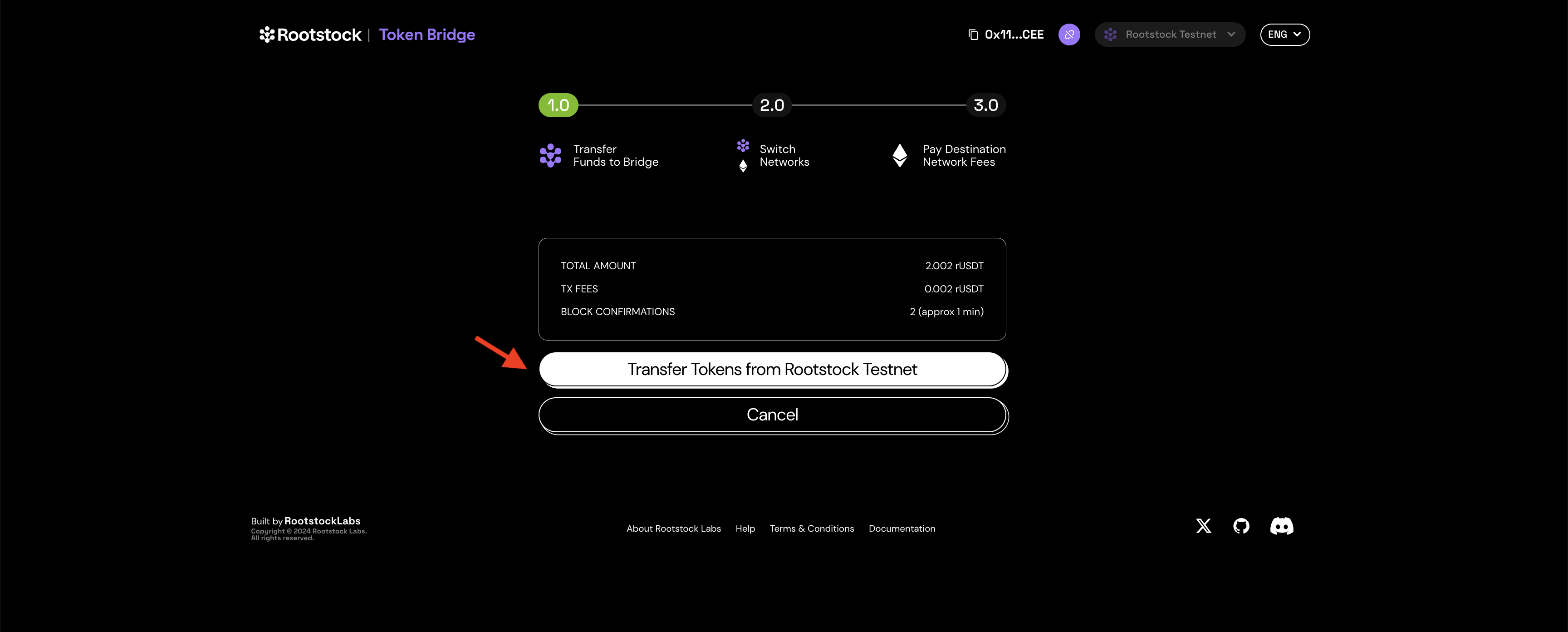 This guide describes the steps to transfer tokens using the Web Interface for the Rootstock Token Bridge dApp. Please refer to the project documentation, if you’d like to know more about how this bridge works. It is possible to test the transfer of tokens between Rootstock Testnet and Sepolia networks, or Rootstock Mainnet and Ethereum networks using the Rootstock Tokenbridge web interface.